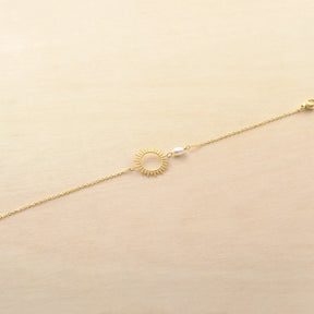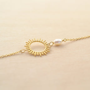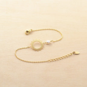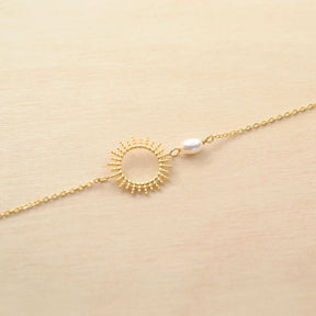 Ravissant bracelet composé d'un soleil accompagné d'une perle d'eau douce. Il peut se porter seul ou bien en accumulation pour un look tendance et solaire.